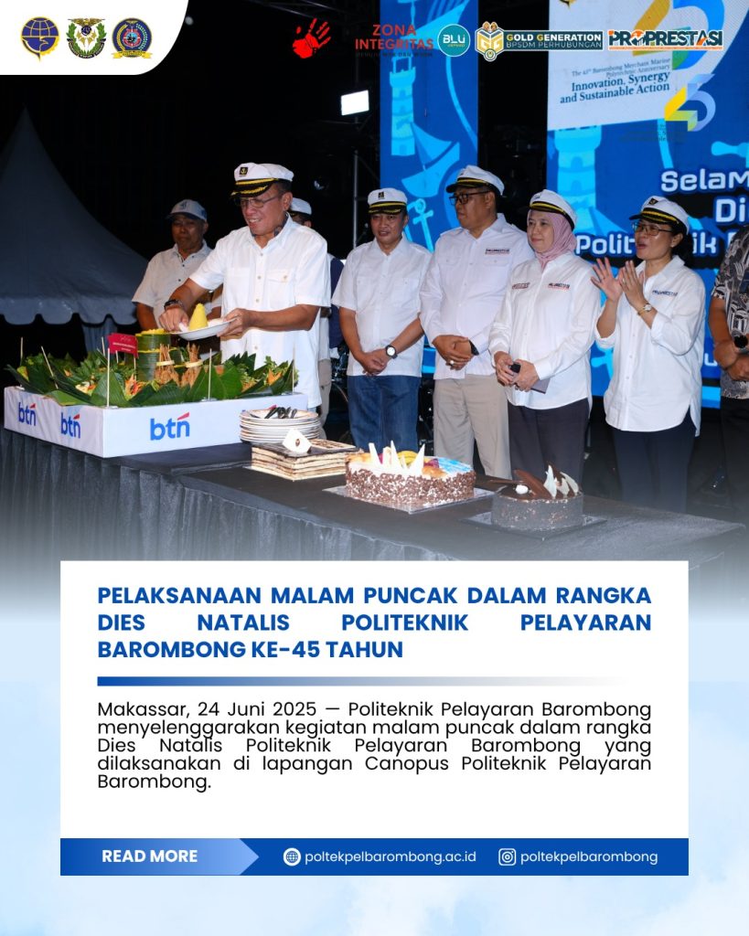 Pelaksanaan Malam Puncak Dalam Rangka Dies Natalis Politeknik Pelayaran Barombong ke-45 Tahun, Selasa (24/06)