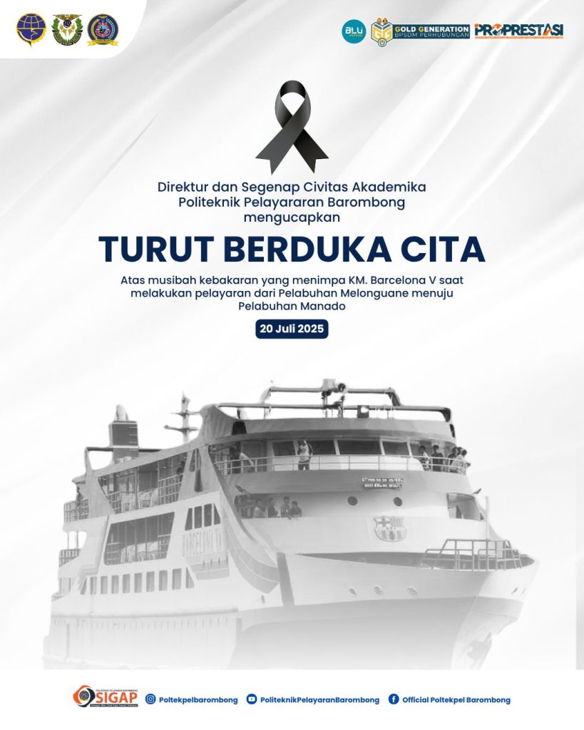 Direktur dan Segenap Civitas Akademika Politeknik Pelayaran Barombong menyampaikan rasa duka yang mendalam atas musibah kebakaran yang menimpa KM Barcelona V.