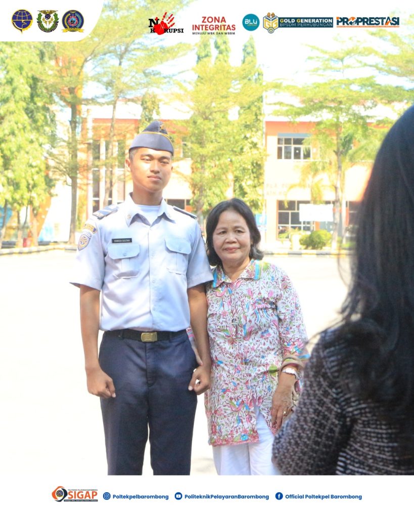 Pada kesempatan hari ini juga dihadiri oleh jajaran Manajemen Politeknik Pelayaran Barombong serta Direktur Politeknik Pelayaran Barombong yang diwakili oleh Wakil Direktur III, ibu Meti Kendek, S.Si.T.,M.A.P. Dalam sambutannya beliau menyampaikan pentingnya peran keluarga dalam mendampingi proses pendidikan Taruna. “Kami percaya bahwa kolaborasi antara kampus dan orang tua sangat penting untuk memastikan Taruna tumbuh menjadi pelaut yang profesional, tangguh, dan berintegritas,” ujarnya.