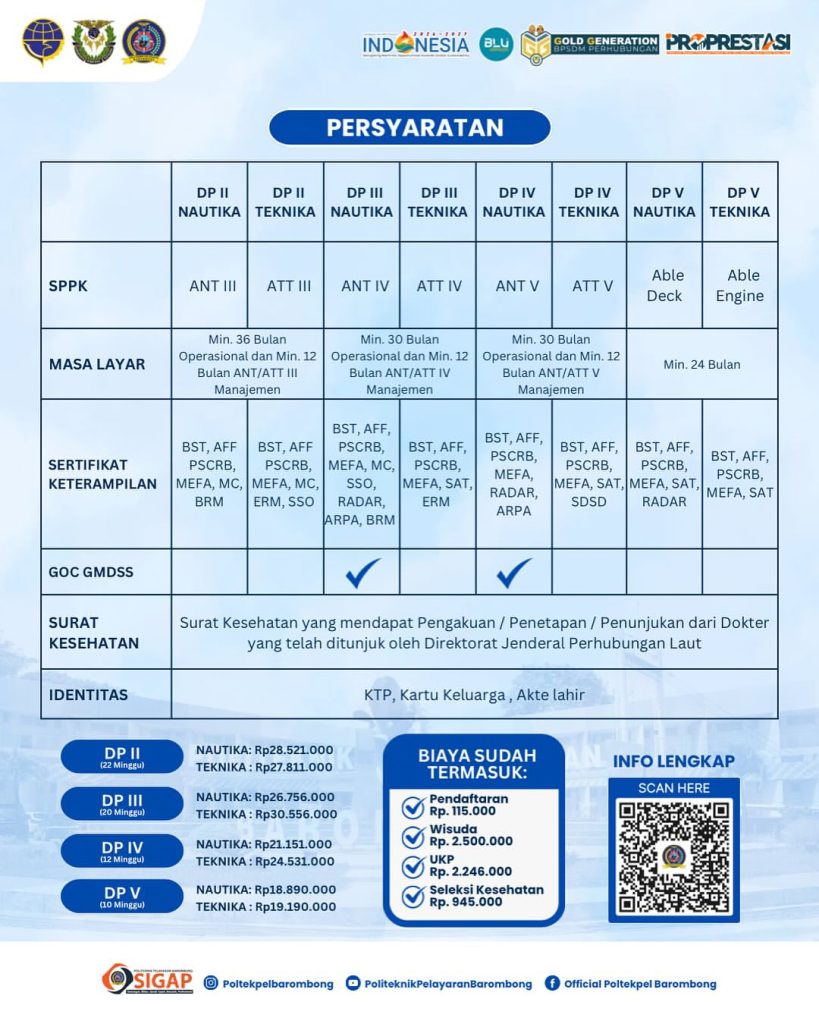 Pendaftaran dapat melalui website poltekpelbarombong.ac.id atau datang langsung ke Kampus Poltekpel Barombong