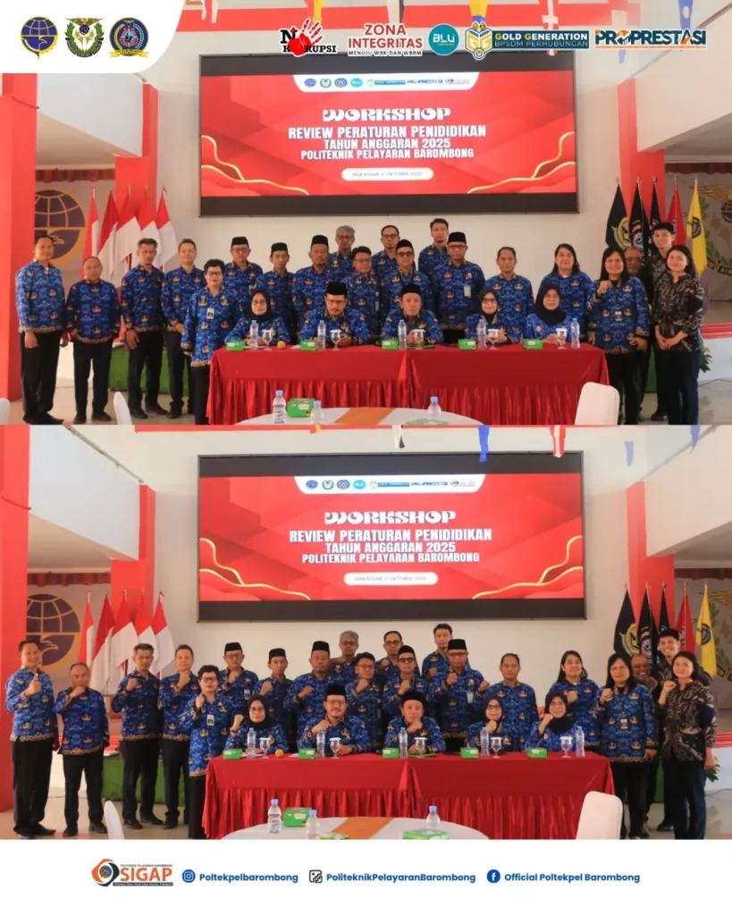 Makassar, 17 Oktober – Kegiatan ini bertujuan untuk meninjau kembali berbagai regulasi internal dan kebijakan akademik agar sejalan dengan kebutuhan industri pelayaran dan perkembangan dunia pendidikan yang semakin dinamis. Workshop ini melibatkan jajaran pimpinan, para dosen, serta tenaga kependidikan sebagai bagian dari proses reflektif dan kolaboratif untuk meningkatkan mutu layanan pendidikan di lingkungan Poltekpel Barombong.