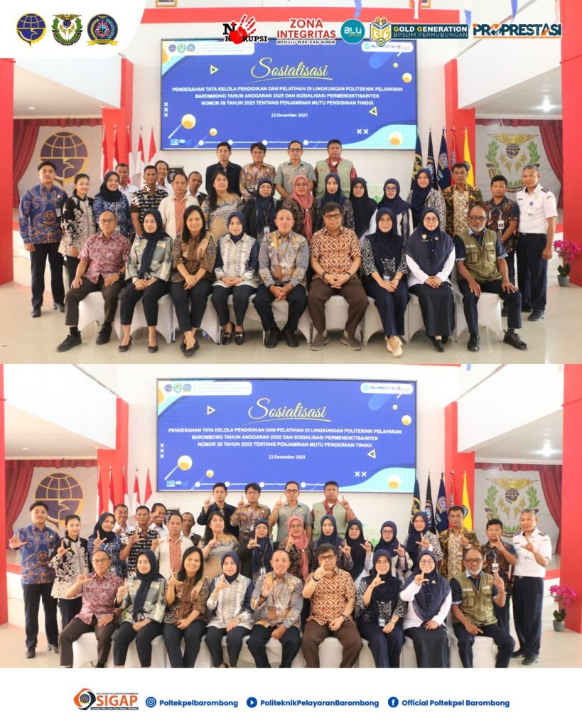 Makassar, 22 Desember 2025 – Politeknik Pelayaran Barombong melaksanakan kegiatan pengesahan peraturan dan pedoman tata kelola pendidikan dan pelatihan yang dirangkaikan dengan sosialisasi Peraturan Menteri Pendidikan Tinggi, Sains, dan Teknologi (Permendiktisaintek) Nomor 39 Tahun 2025, sebagai upaya penguatan tata kelola penyelenggaraan pendidikan vokasi.