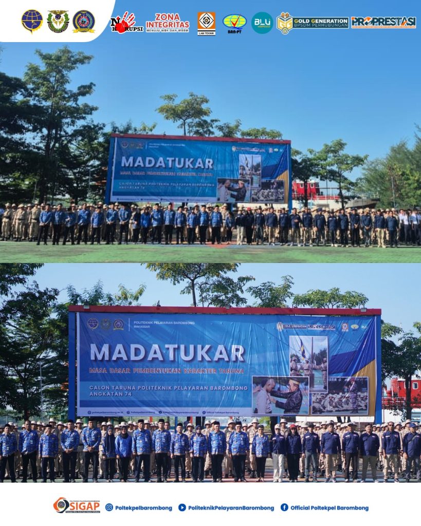 Dalam sambutannya, Kepala Bagian Administrasi Akademik dan Ketarunaan Dr. Ir. Supardi, M.Si., M.Mar.E., IPM. yang mewakili Direktur Politeknik Pelayaran Barombong menyampaikan bahwa Madatukar merupakan tahapan awal yang sangat penting dalam membentuk karakter dan jati diri seorang taruna.