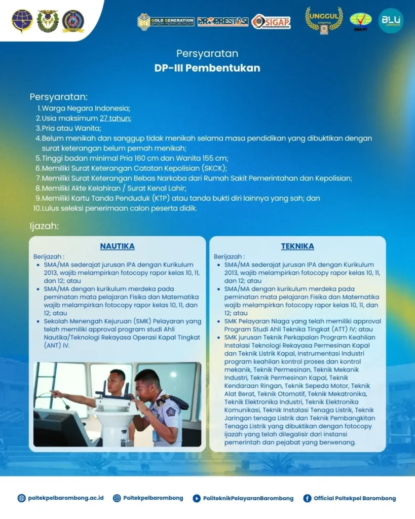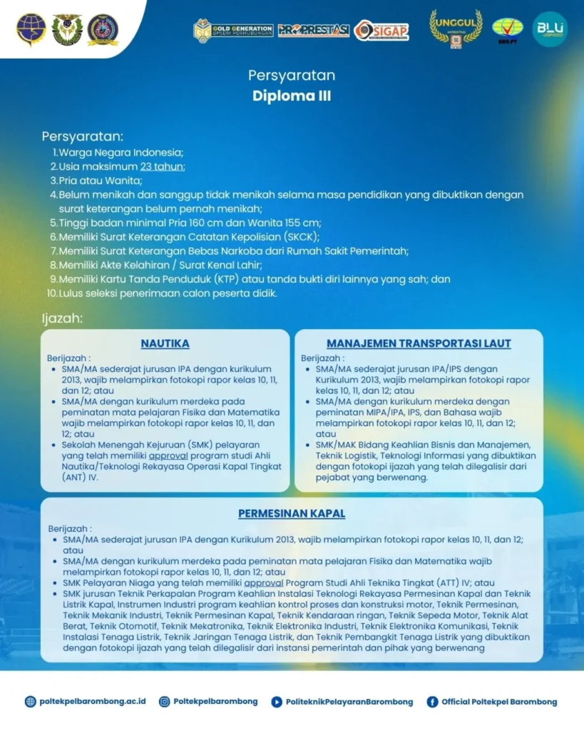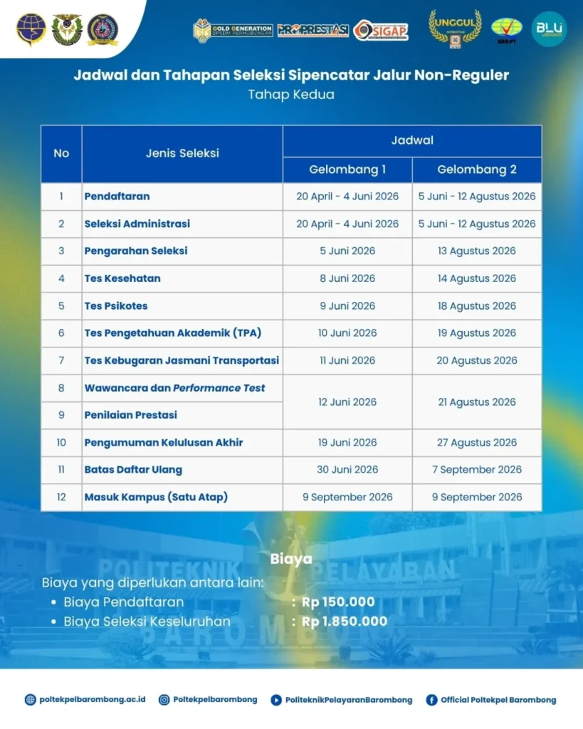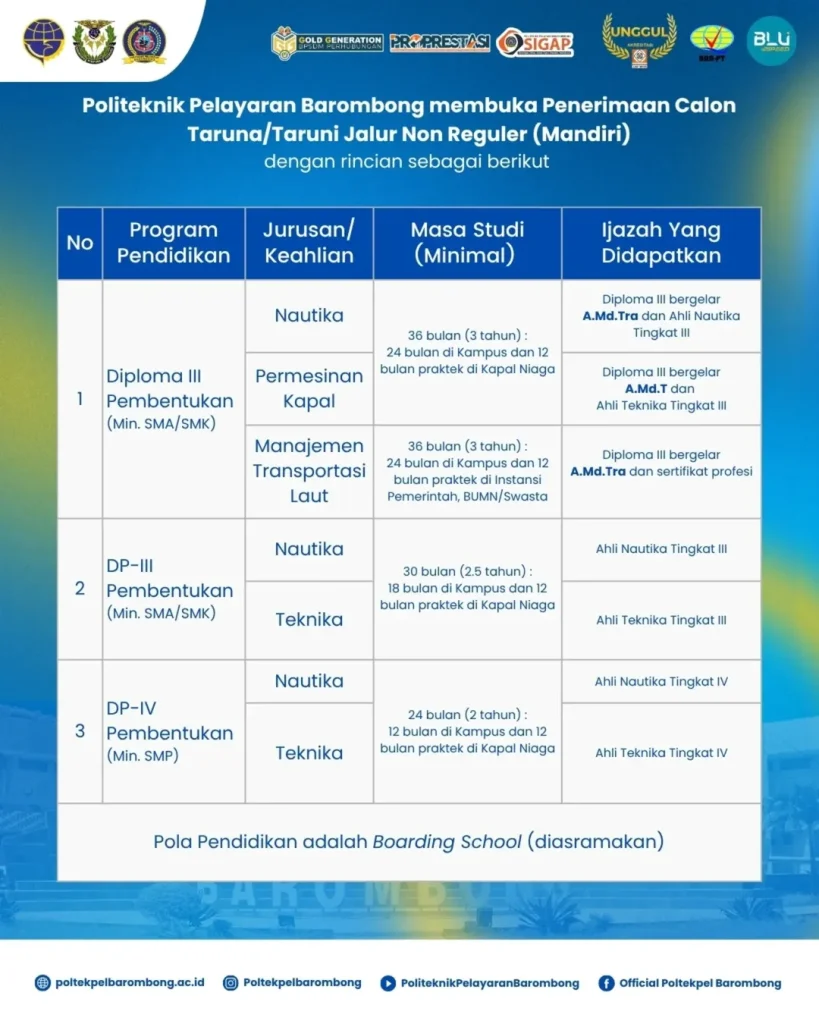 Politeknik Pelayaran Barombong Program Diploma & Non Diploma Jalur Non Reguler (Mandiri) Angkatan 74 Tahap Kedua “RESMI DIBUKA”